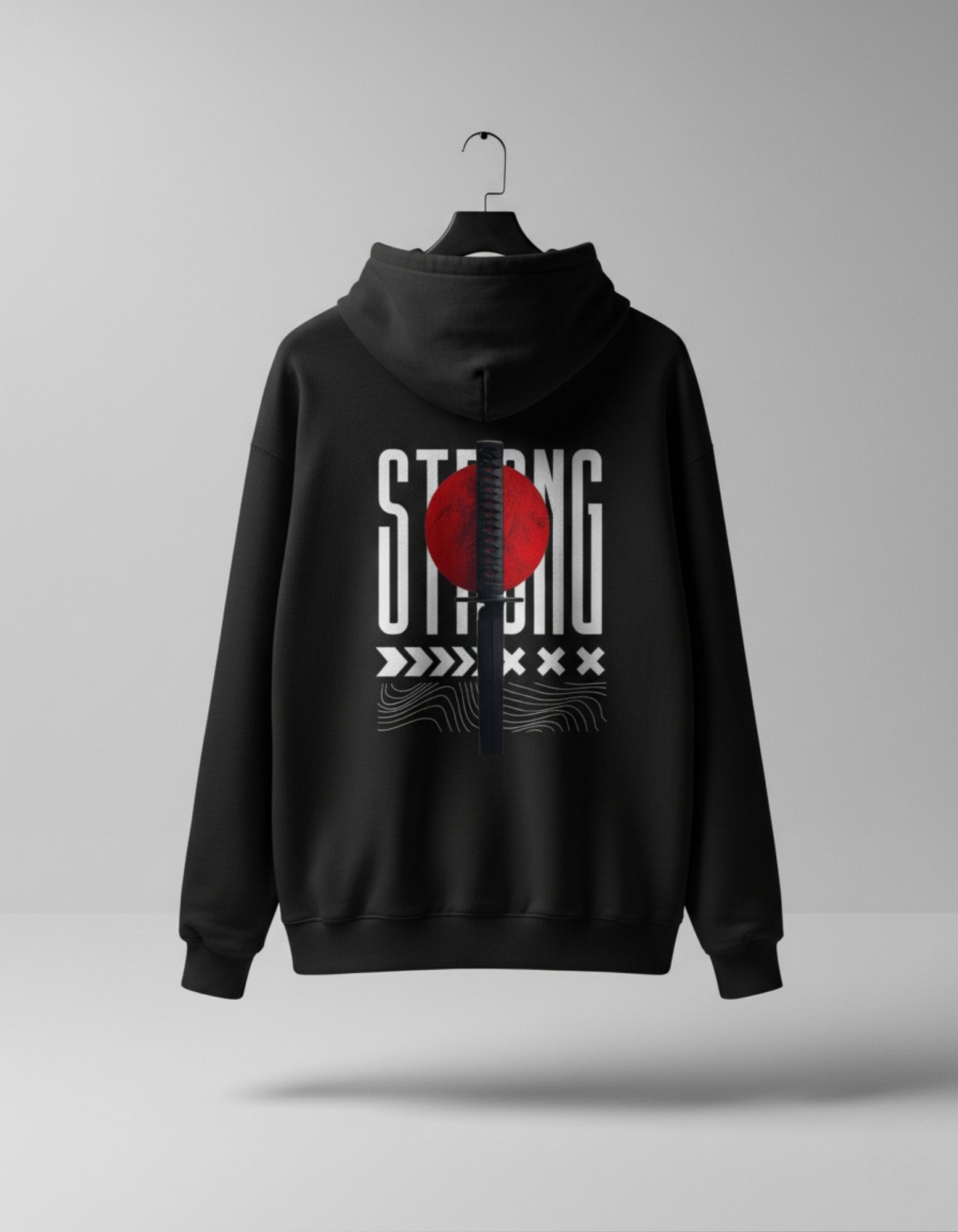 The Katana Strong Streetwear Hoodie is where modern street style meets unbreakable spirit. Designed for those who stand tall, this hoodie features a bold katana sword graphic slicing through a powerful red sun, set against a jet-black background. The oversized “STRONG” typography and dynamic patterns make a statement that can’t be ignored, whether on the street or in a crowd.